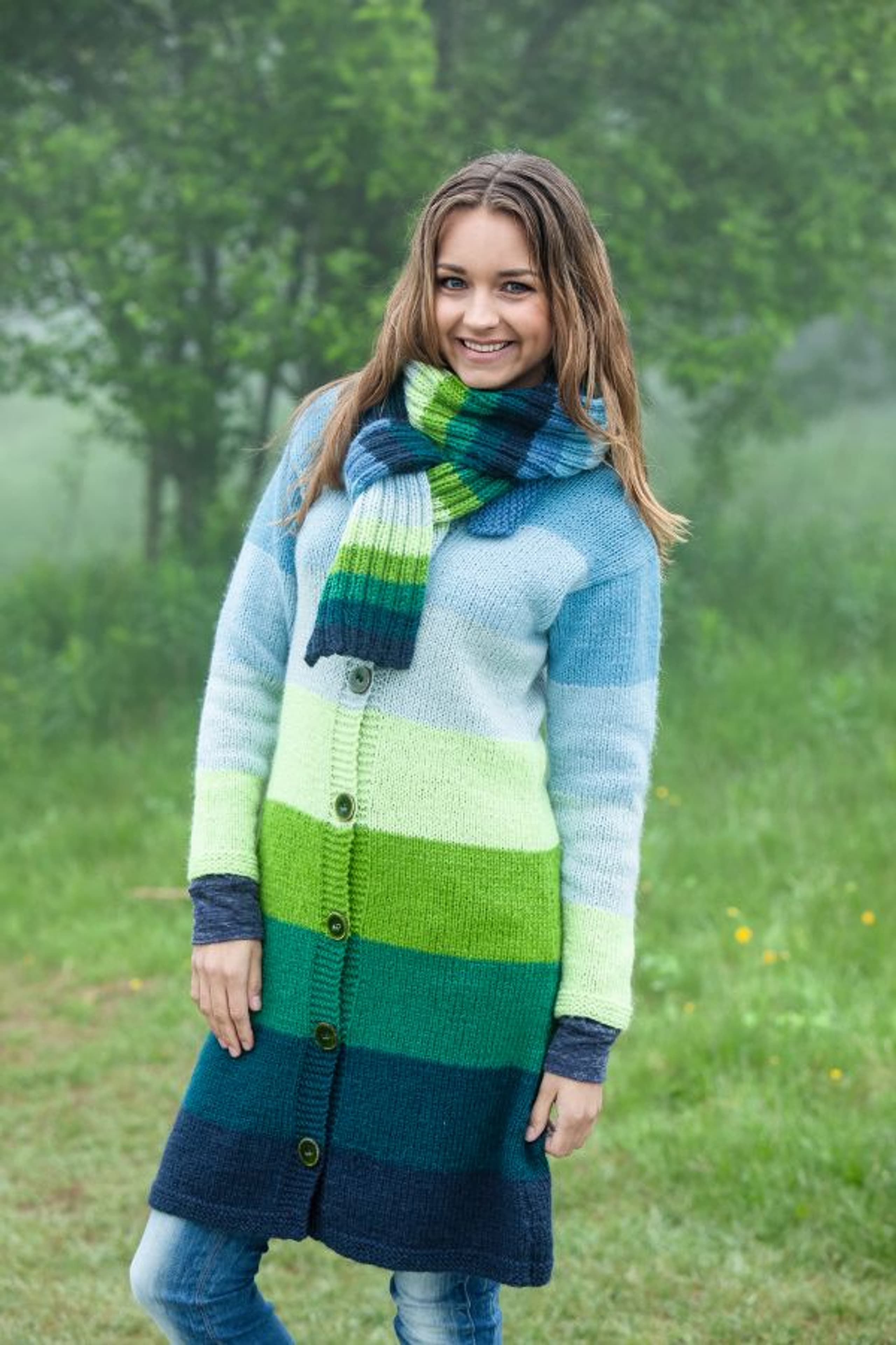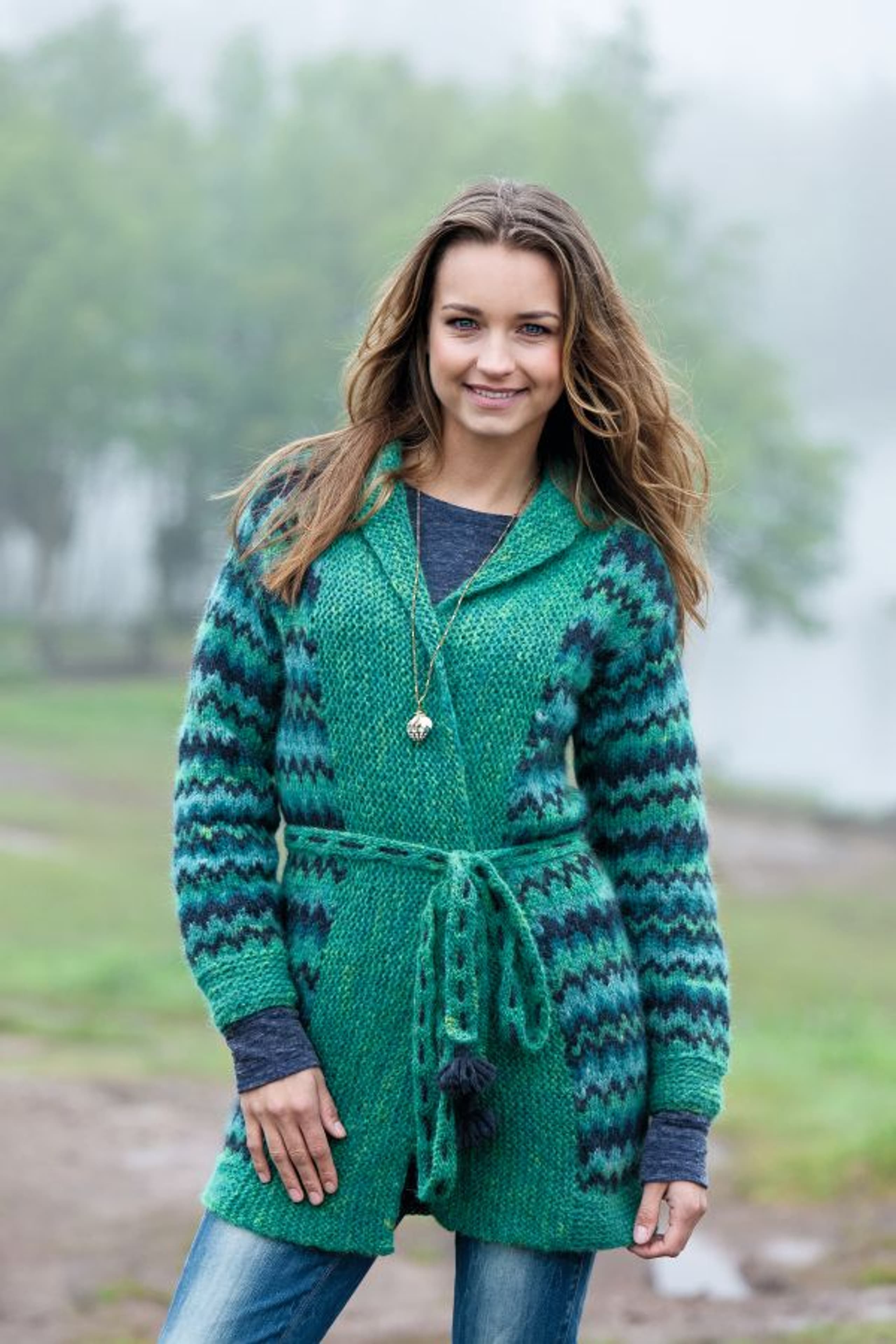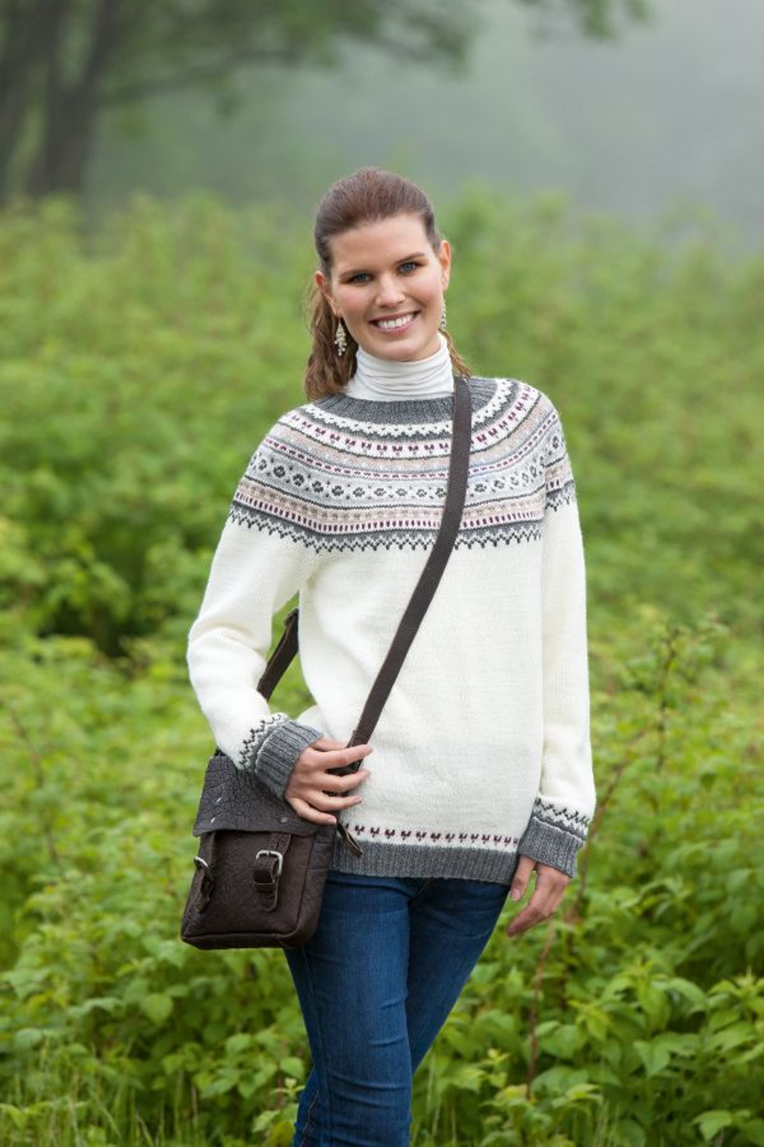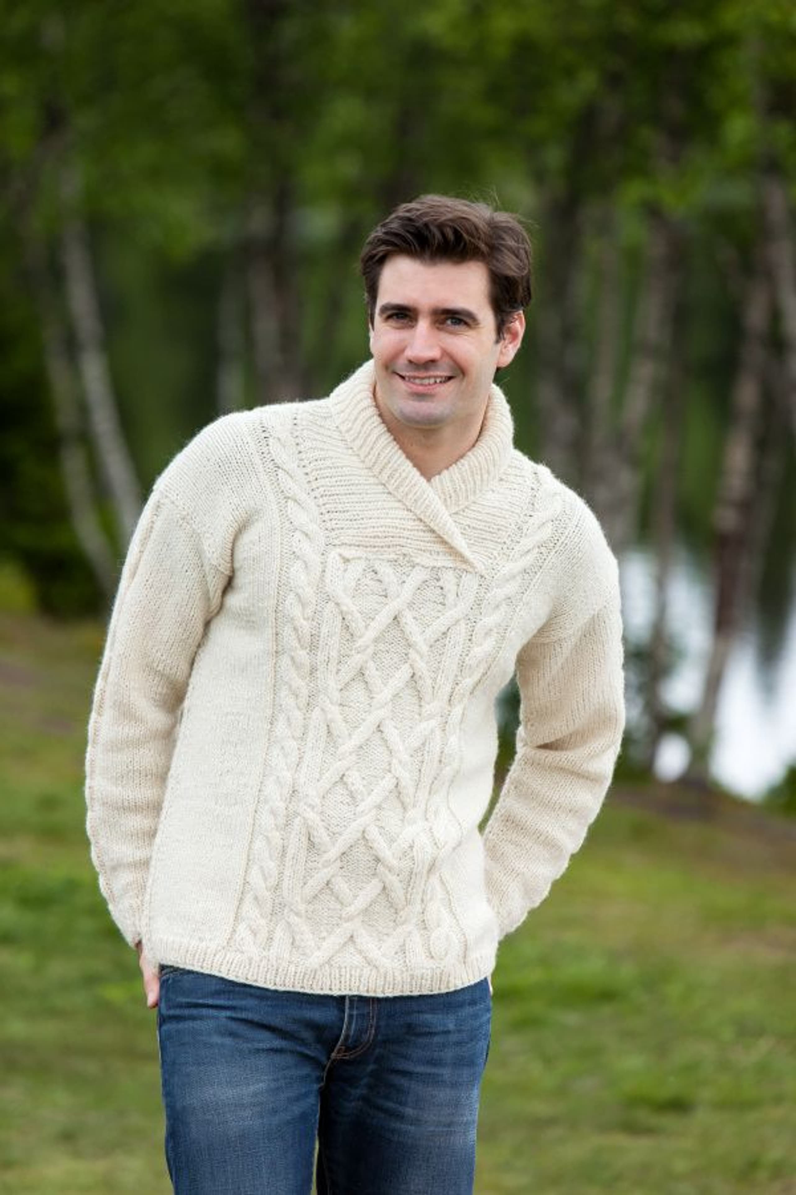 Genser med fletter og sjalskrage