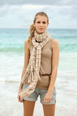 Alpaca Silk. Skjerfet er i en størrelse og måler ca 38 x 180 cm (uten frynsene).