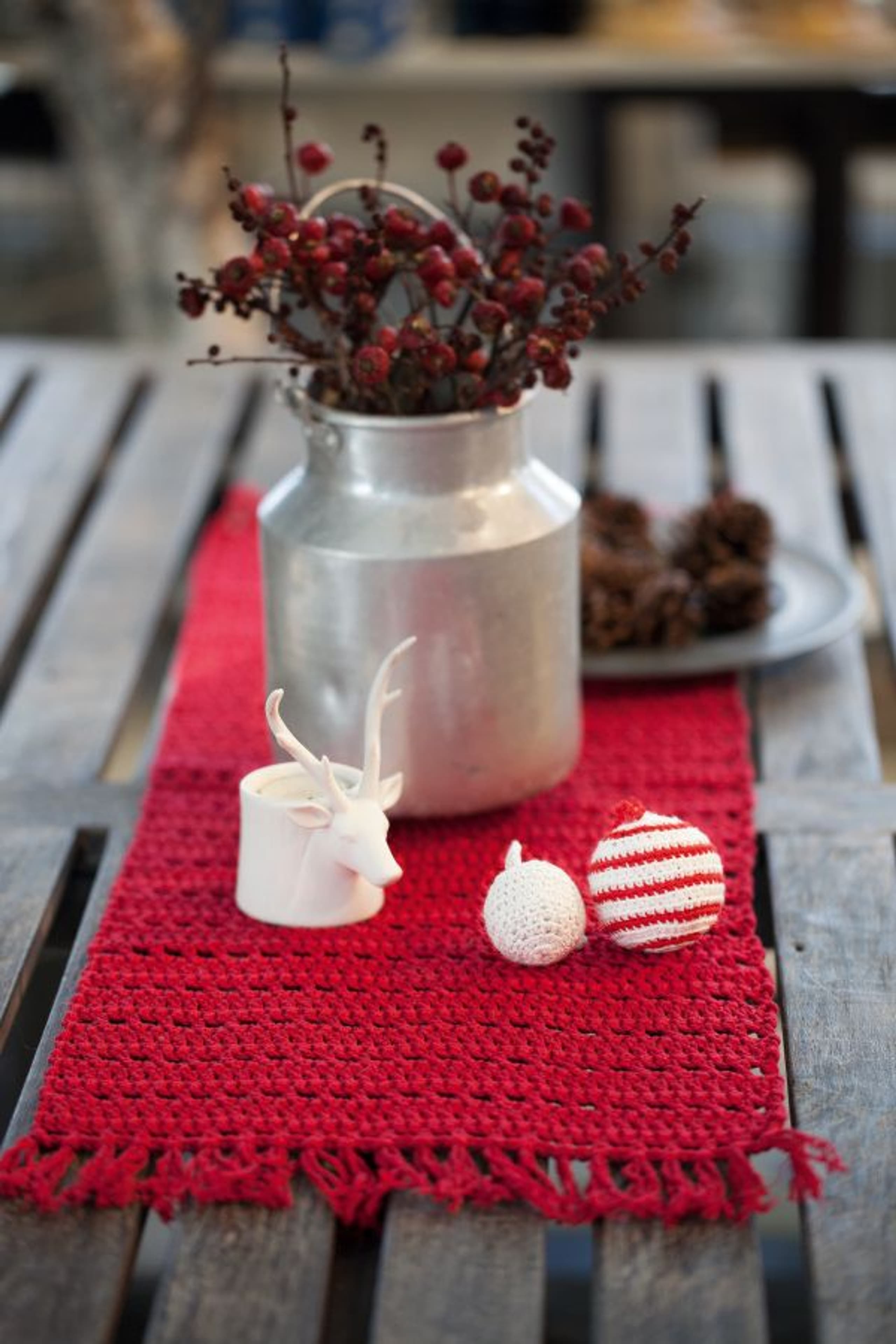 Heklet spisebrikke og serviettring