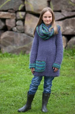 Iris Alpakka og Inca Alpakka. Til skjerf, løs hals og lue: Bruk restegarnet og suppler ved behov.