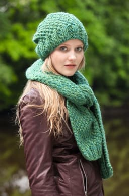 Lue og skjerf i dobbel perlestrikk