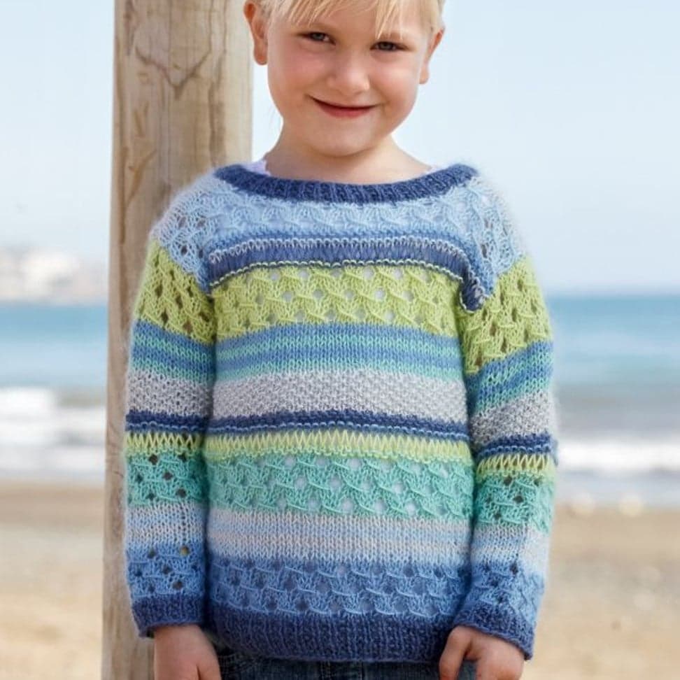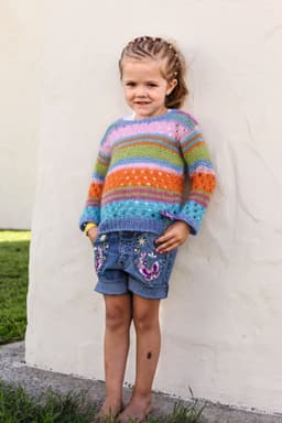 Plaggene strikkes med 1 tråd Pandora og 1 tråd Plum sammen i samme farge.