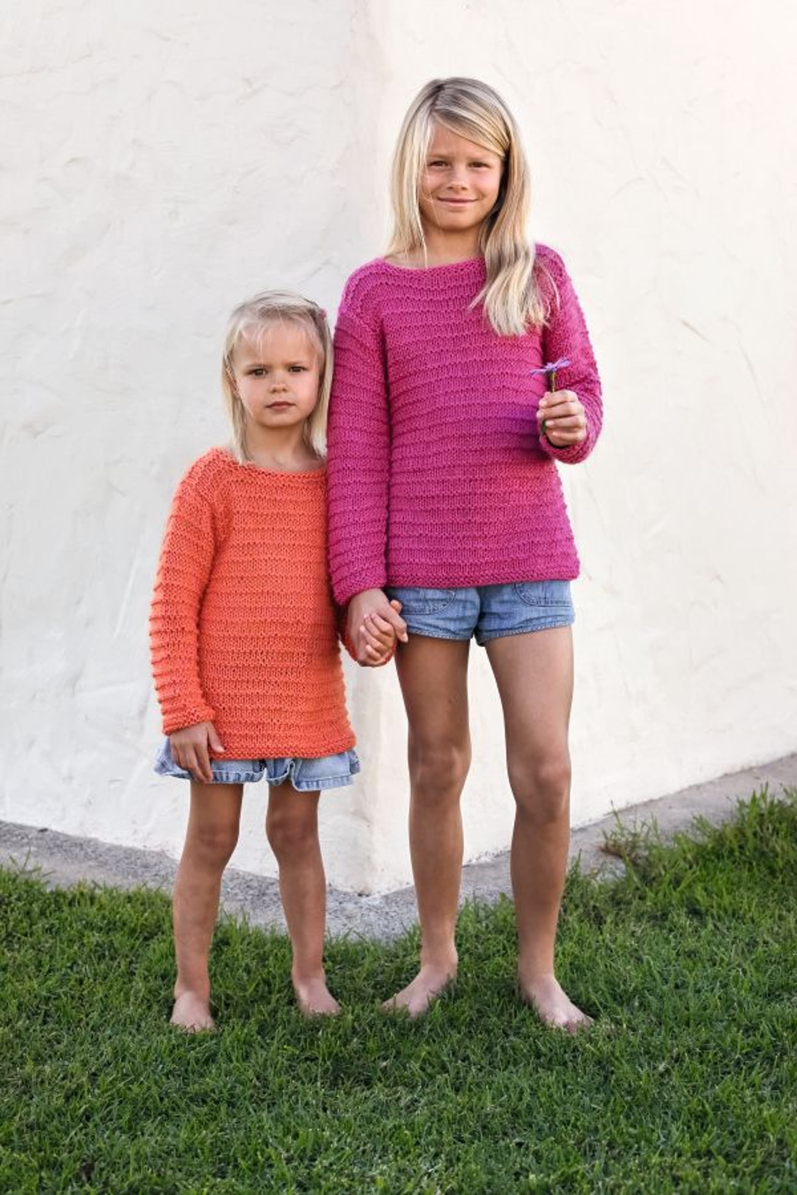 Deilig bomullsgenser i Petunia med rund hals eller knappestolpe