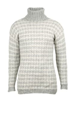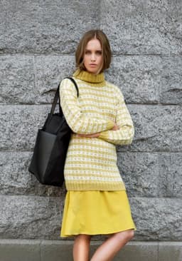 Puno Petit er utgående. Genser med border strikket i Mitu eller Puno petit