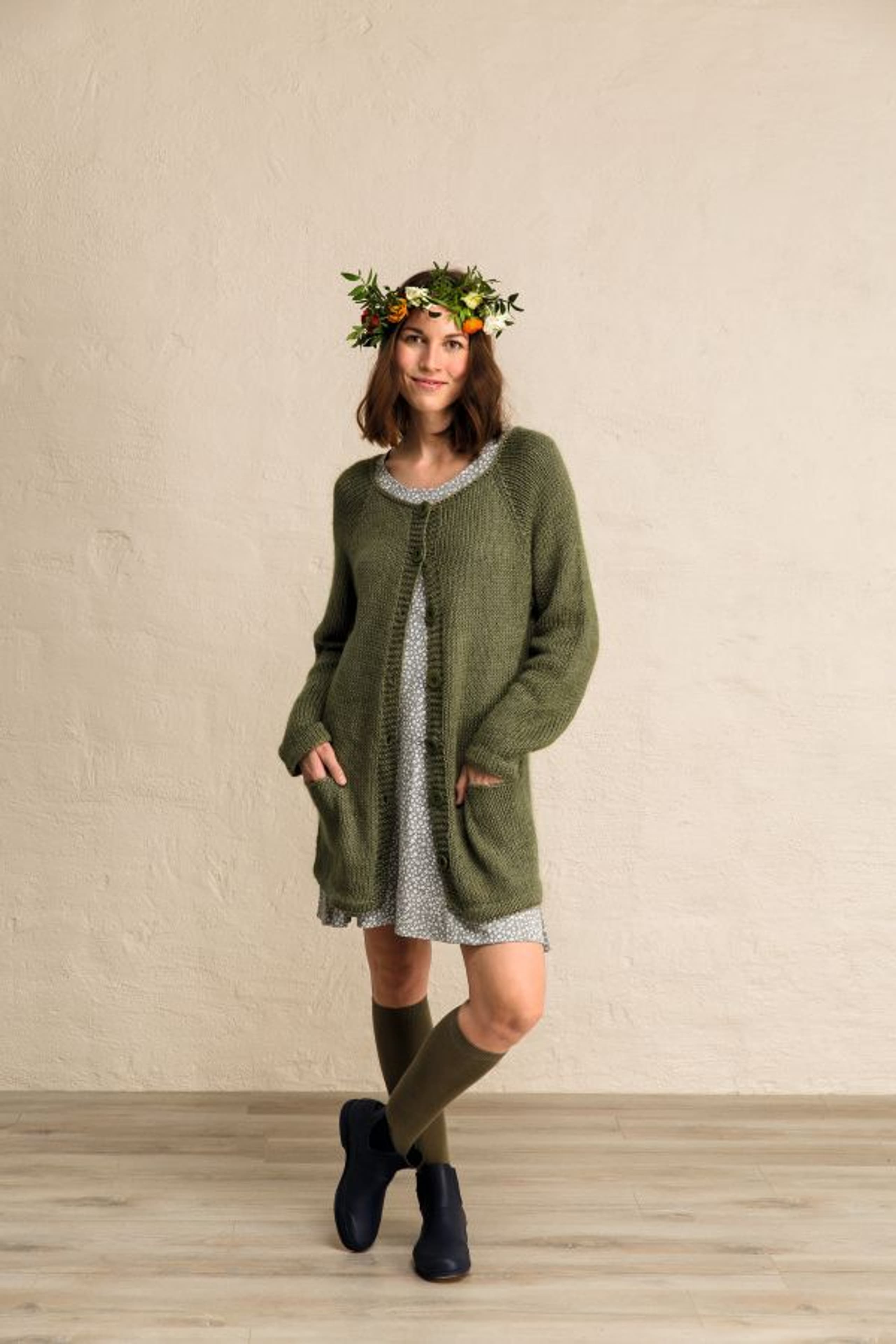 Jakke med raglan og lommer