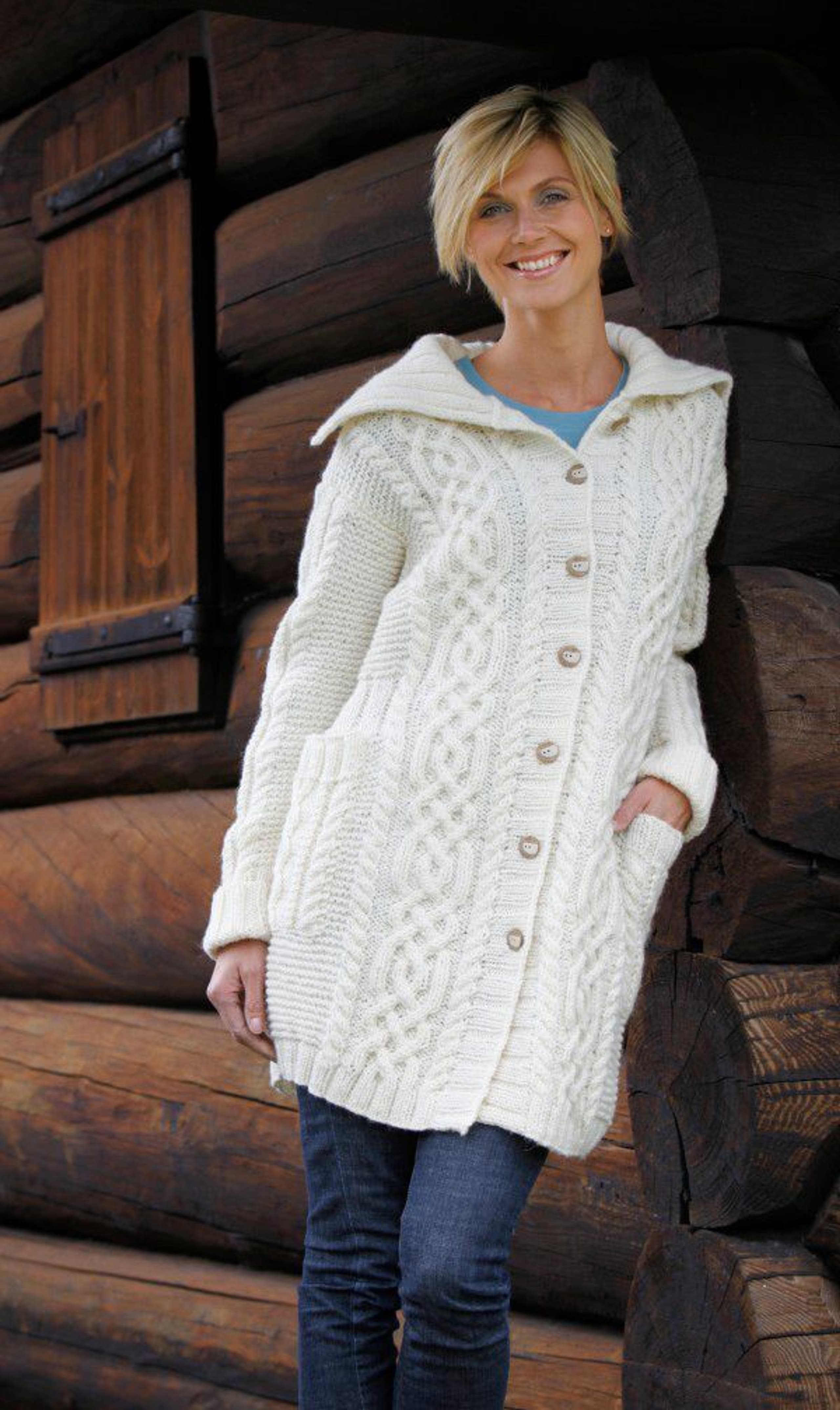 Kåpe i dobbel perlestrikk med lommer