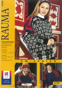 Strikkemønster til den offesielle VM-genseren i Trondheim 1997. Oppskrift på genser, lue og pannebånd.